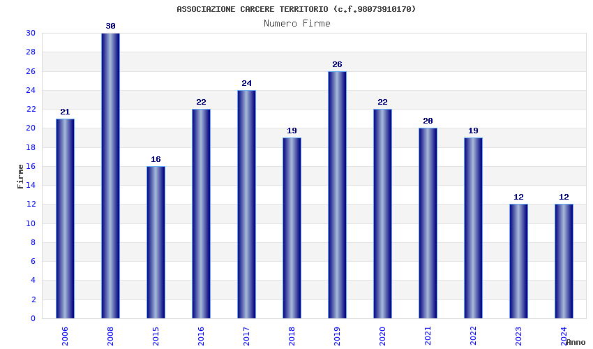 | Anno | Firme | Importi | Media | Naz. | Reg. | Prov. | Comu. |