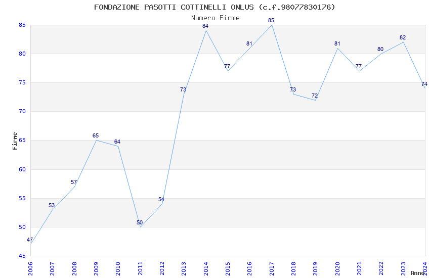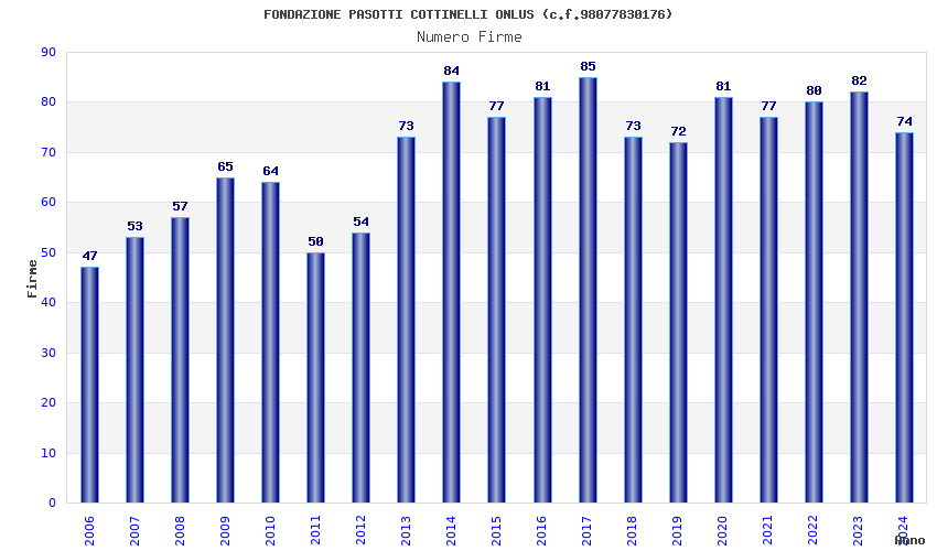 | Anno | Firme | Importi | Media | Naz. | Reg. | Prov. | Comu. |