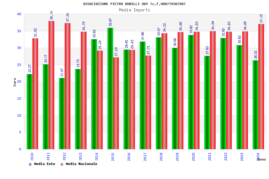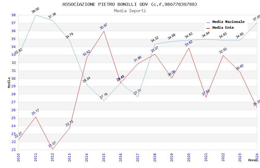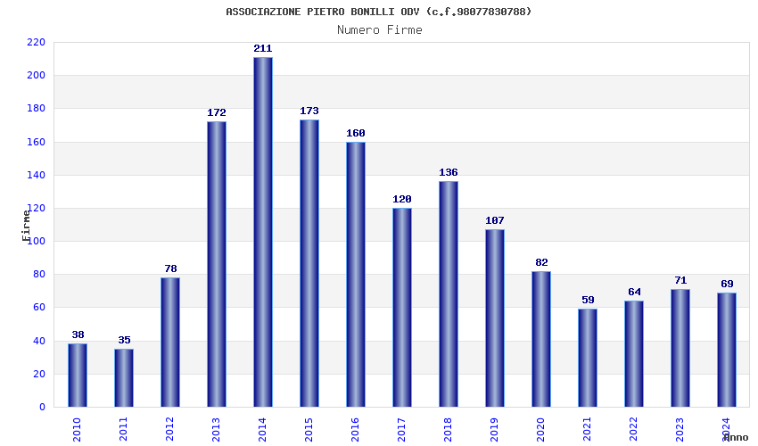 | Anno | Firme | Importi | Media | Naz. | Reg. | Prov. | Comu. |