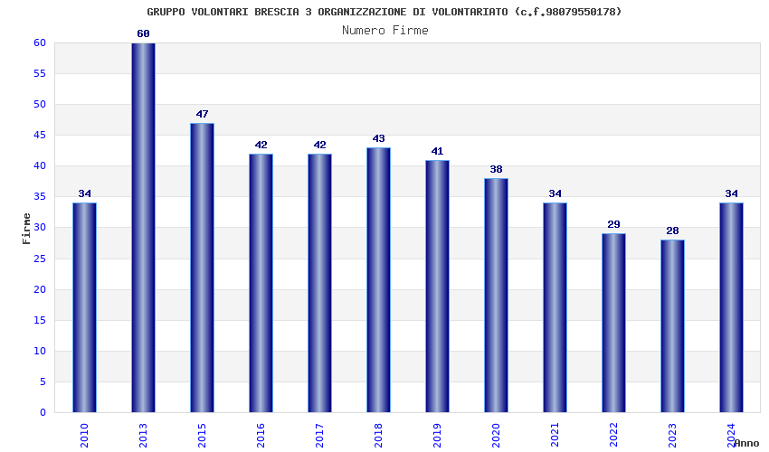 | Anno | Firme | Importi | Media | Naz. | Reg. | Prov. | Comu. |