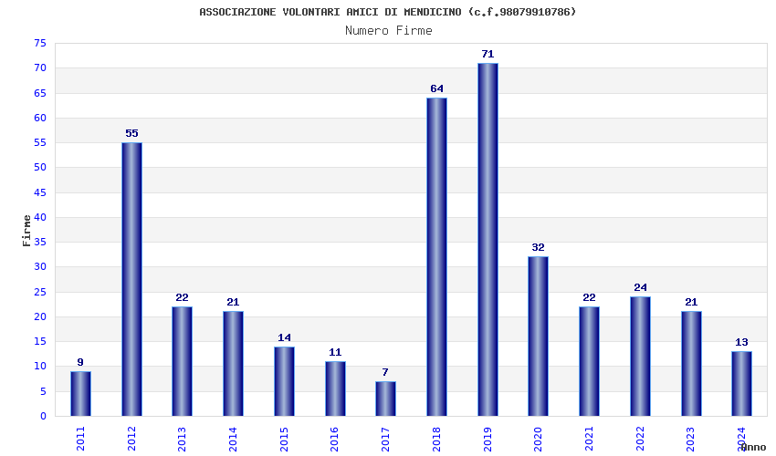 | Anno | Firme | Importi | Media | Naz. | Reg. | Prov. | Comu. |