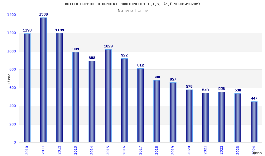 | Anno | Firme | Importi | Media | Naz. | Reg. | Prov. | Comu. |
