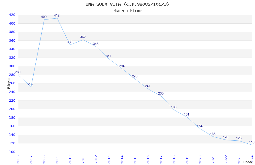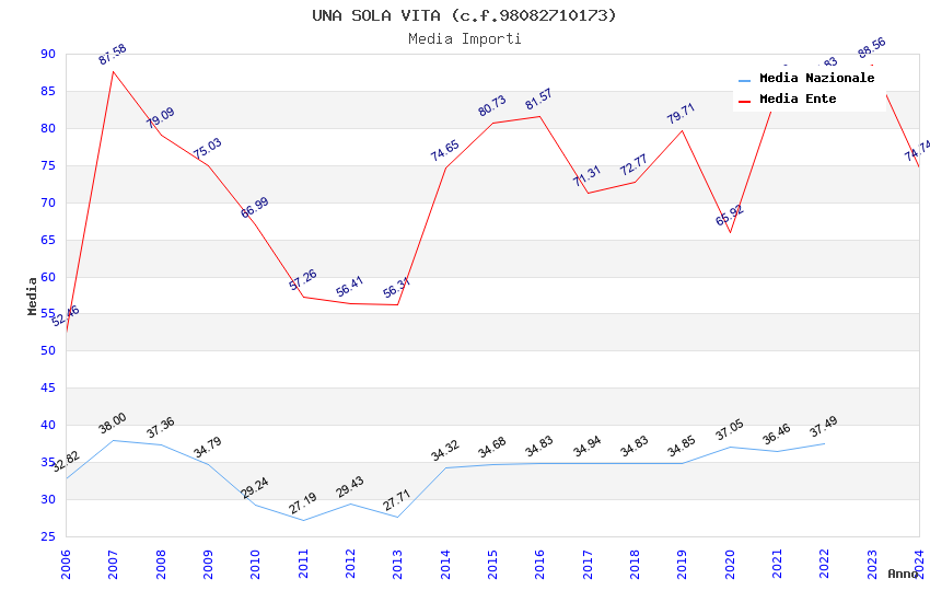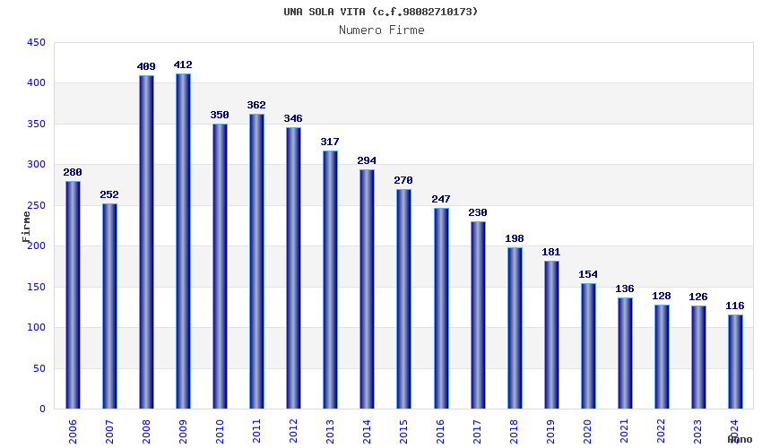 | Anno | Firme | Importi | Media | Naz. | Reg. | Prov. | Comu. |