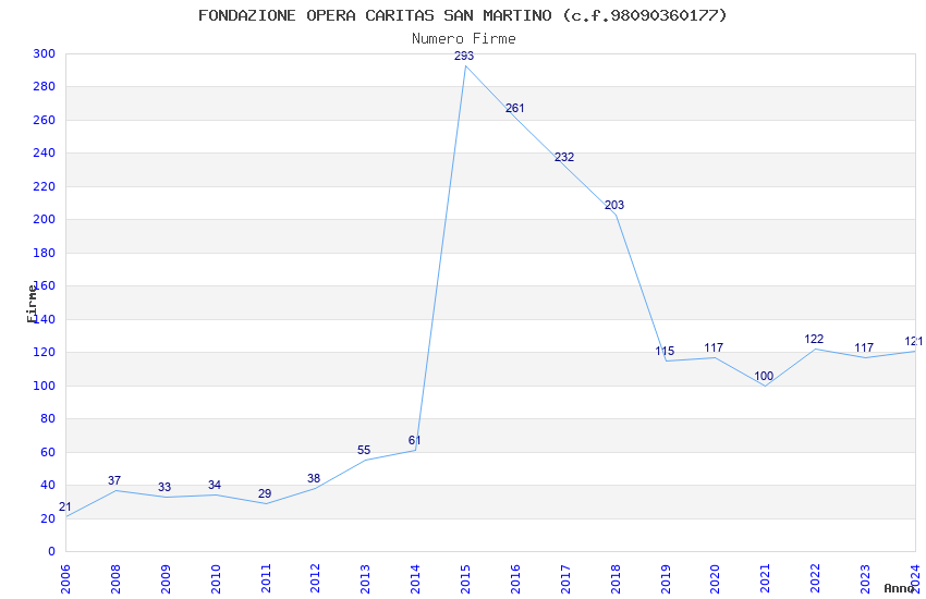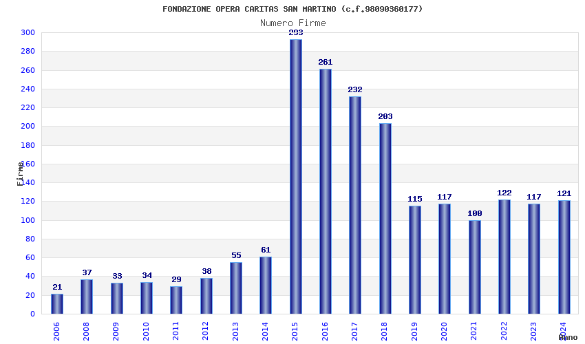 | Anno | Firme | Importi | Media | Naz. | Reg. | Prov. | Comu. |
