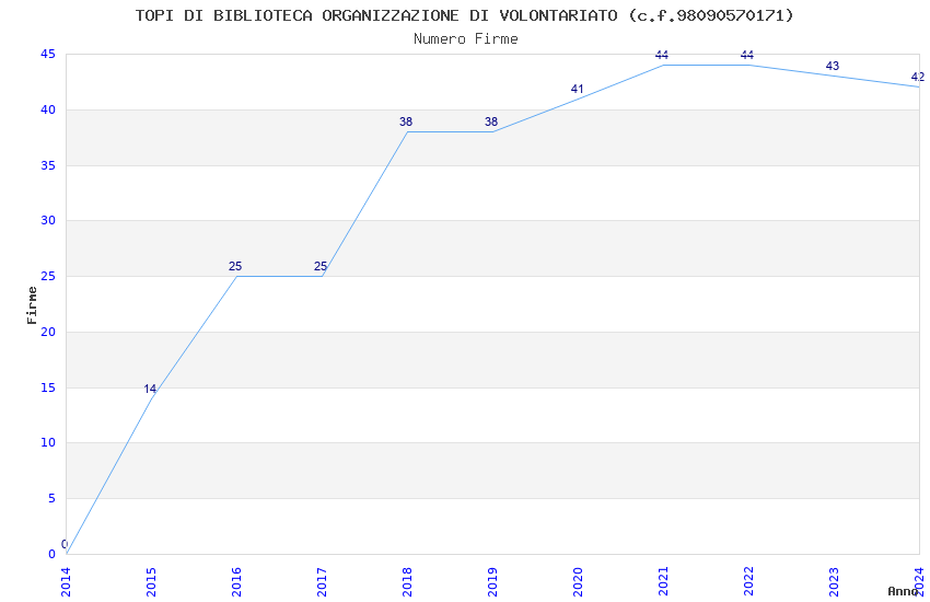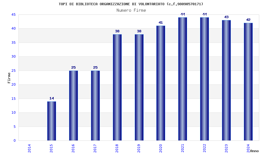 | Anno | Firme | Importi | Media | Naz. | Reg. | Prov. | Comu. |
