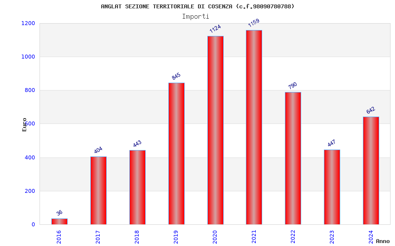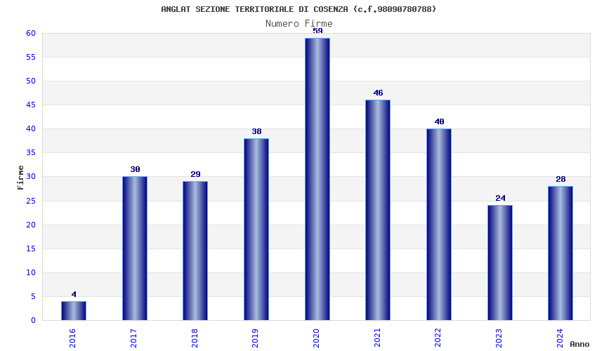 | Anno | Firme | Importi | Media | Naz. | Reg. | Prov. | Comu. |
