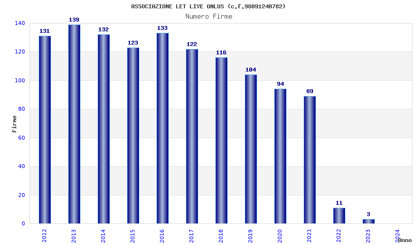| Anno | Firme | Importi | Media | Naz. | Reg. | Prov. | Comu. |