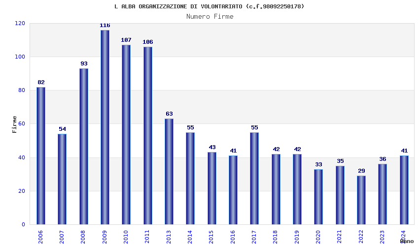 | Anno | Firme | Importi | Media | Naz. | Reg. | Prov. | Comu. |