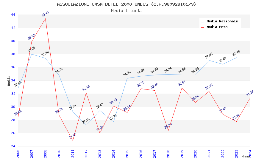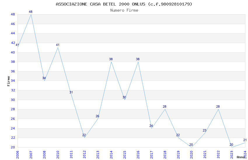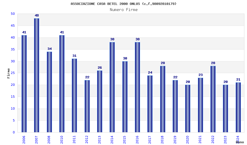 | Anno | Firme | Importi | Media | Naz. | Reg. | Prov. | Comu. |