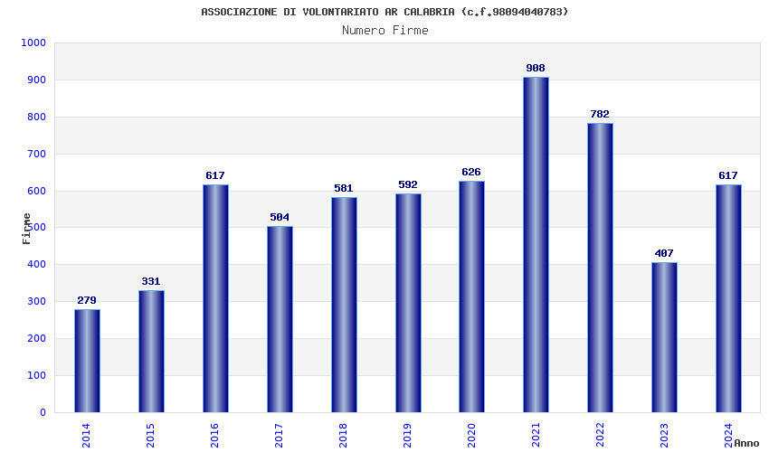 | Anno | Firme | Importi | Media | Naz. | Reg. | Prov. | Comu. |