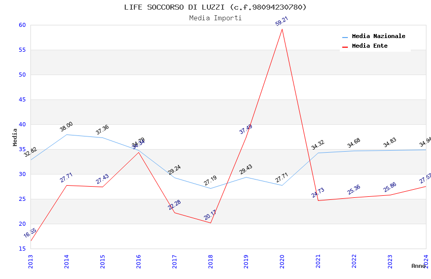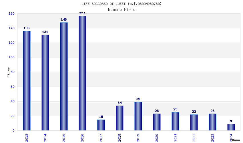 | Anno | Firme | Importi | Media | Naz. | Reg. | Prov. | Comu. |