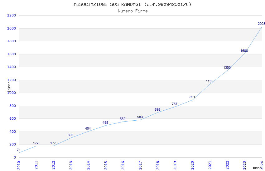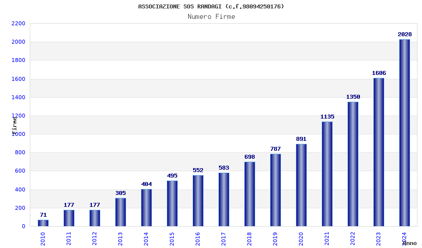 | Anno | Firme | Importi | Media | Naz. | Reg. | Prov. | Comu. |