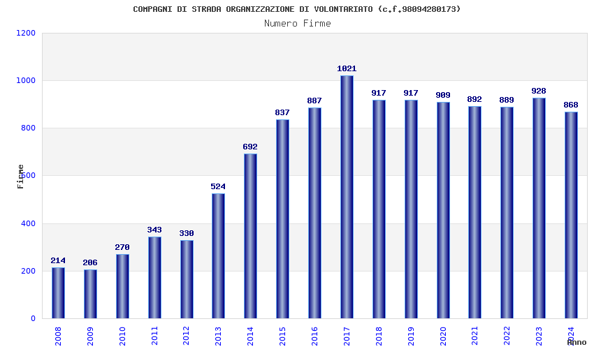 | 2017 | 1.021 | 24.389,71 | 23,89 | 1.667 | 421 | 26 | 2 |