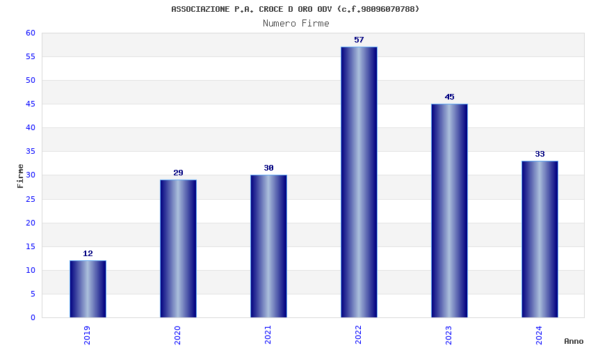 | Anno | Firme | Importi | Media | Naz. | Reg. | Prov. | Comu. |