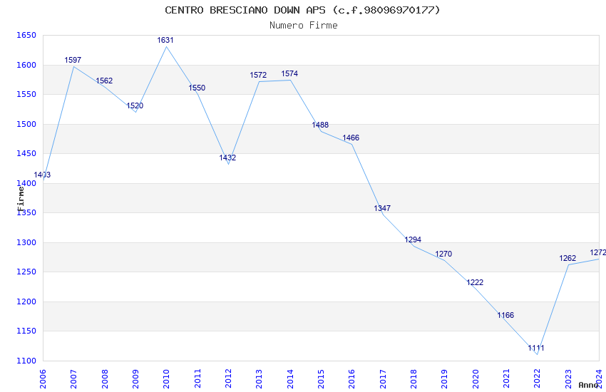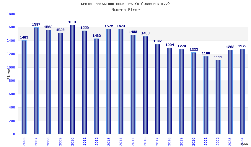 | Anno | Firme | Importi | Media | Naz. | Reg. | Prov. | Comu. |