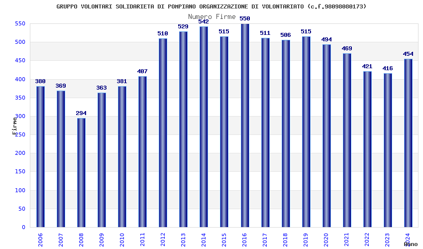 | 2016 | 550 | 12.733,73 | 23,15 | 3.817 | 948 | 82 | 1 |