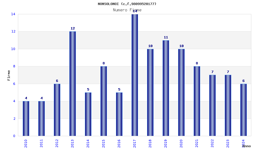 | Anno | Firme | Importi | Media | Naz. | Reg. | Prov. | Comu. |