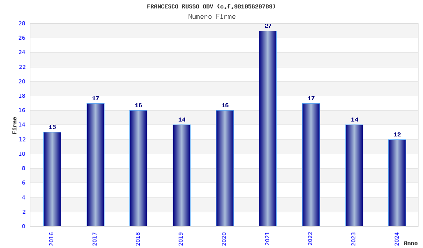 | Anno | Firme | Importi | Media | Naz. | Reg. | Prov. | Comu. |
