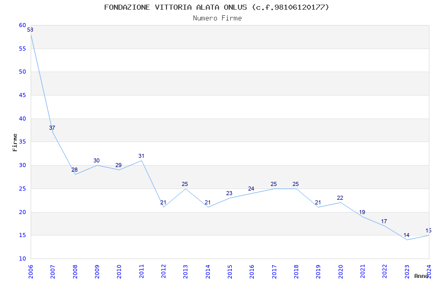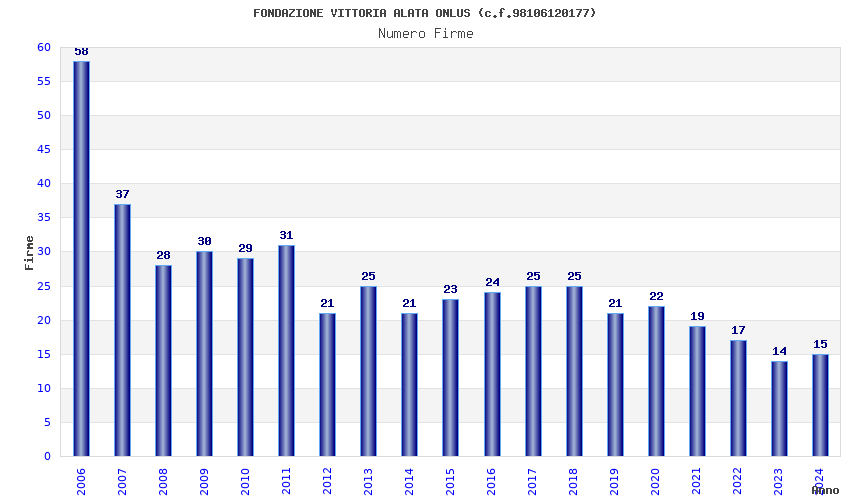 | Anno | Firme | Importi | Media | Naz. | Reg. | Prov. | Comu. |