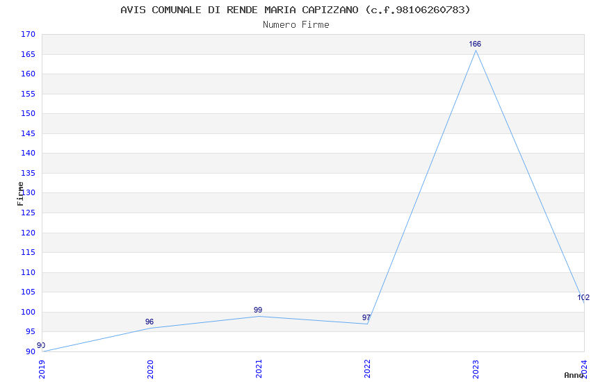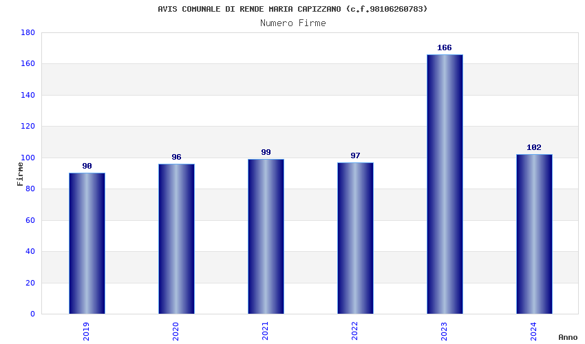 | Anno | Firme | Importi | Media | Naz. | Reg. | Prov. | Comu. |