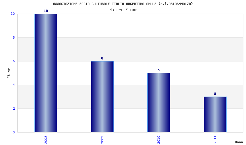 | Anno | Firme | Importi | Media | Naz. | Reg. | Prov. | Comu. |