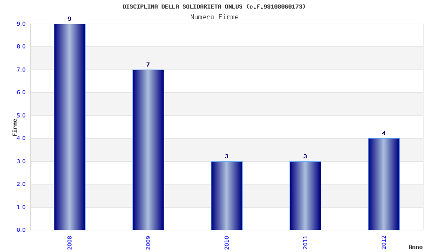 | Anno | Firme | Importi | Media | Naz. | Reg. | Prov. | Comu. |