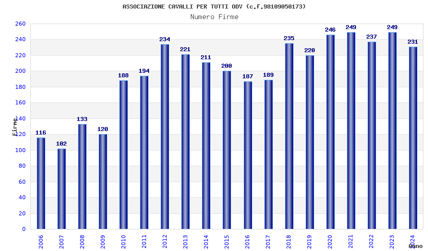 | 2024 | 231 | 11.149,50 | 48,27 | 4.314 | 1.050 | 109 | 2 |
