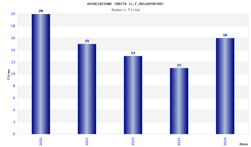 | Anno | Firme | Importi | Media | Naz. | Reg. | Prov. | Comu. |