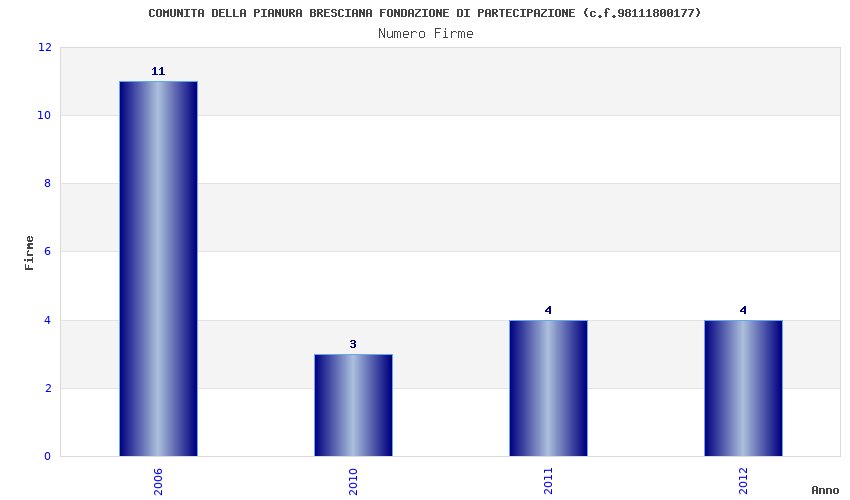 | Anno | Firme | Importi | Media | Naz. | Reg. | Prov. | Comu. |