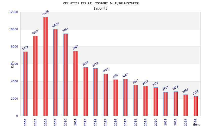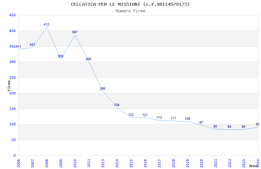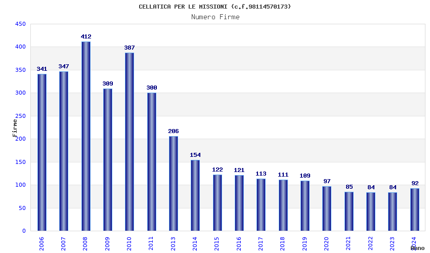 | Anno | Firme | Importi | Media | Naz. | Reg. | Prov. | Comu. |