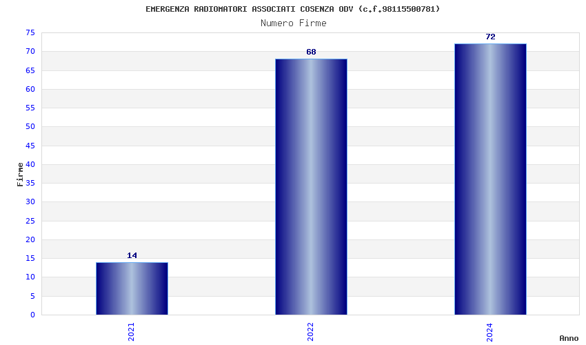 | Anno | Firme | Importi | Media | Naz. | Reg. | Prov. | Comu. |