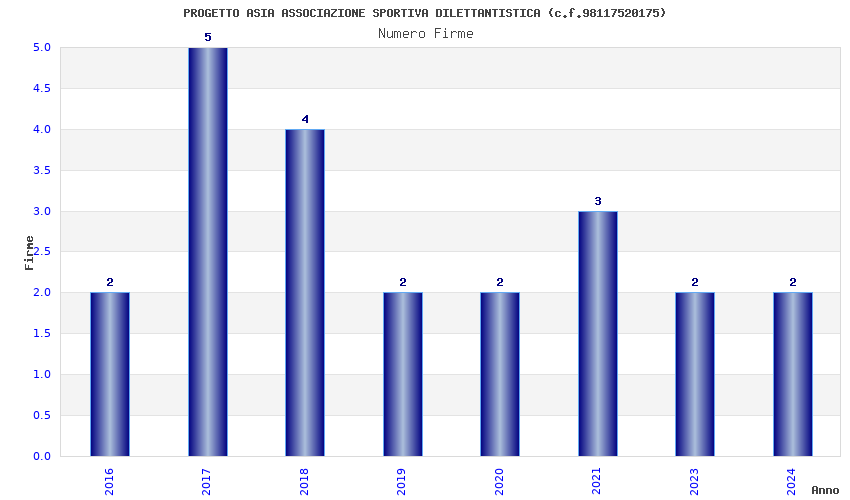 | Anno | Firme | Importi | Media | Naz. | Reg. | Prov. | Comu. |