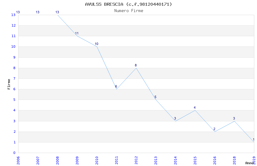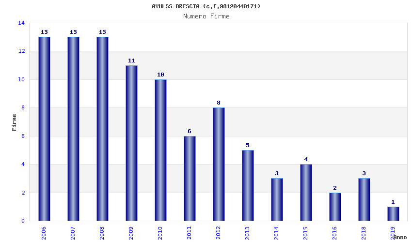 | Anno | Firme | Importi | Media | Naz. | Reg. | Prov. | Comu. |