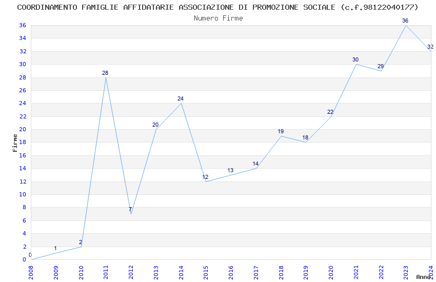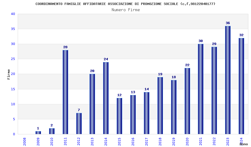 | Anno | Firme | Importi | Media | Naz. | Reg. | Prov. | Comu. |
