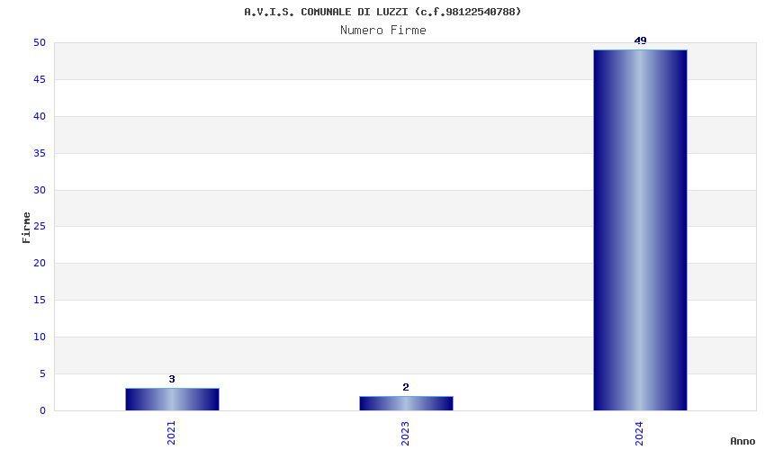 | Anno | Firme | Importi | Media | Naz. | Reg. | Prov. | Comu. |