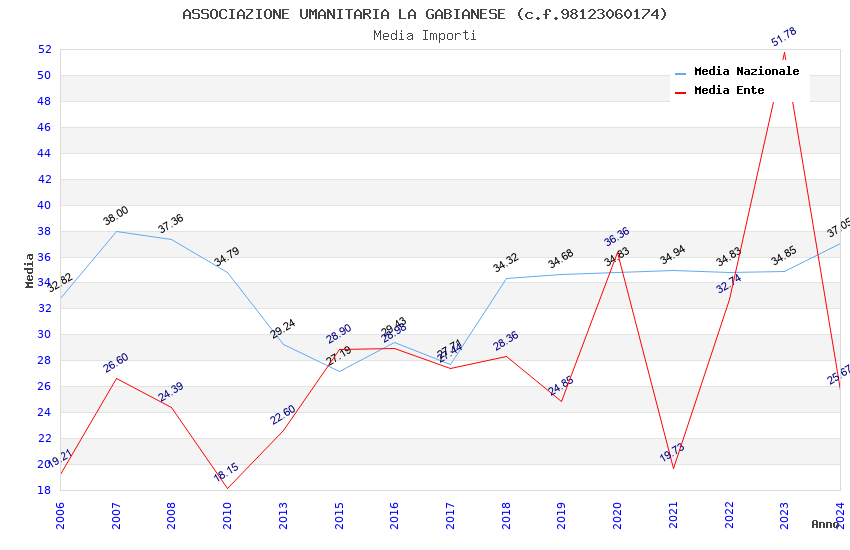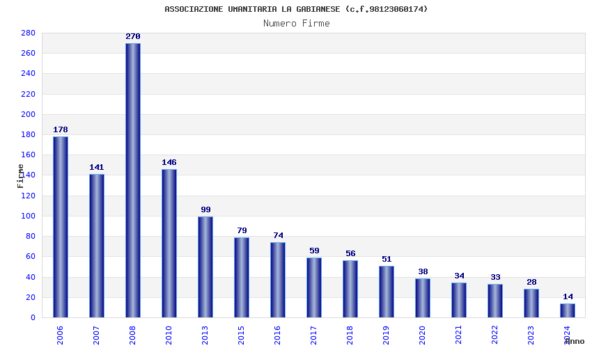 | Anno | Firme | Importi | Media | Naz. | Reg. | Prov. | Comu. |