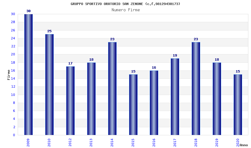 | Anno | Firme | Importi | Media | Naz. | Reg. | Prov. | Comu. |