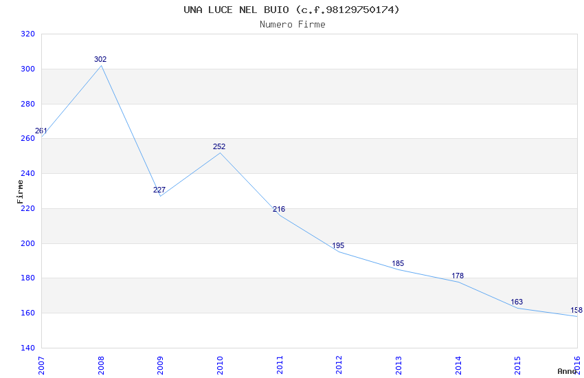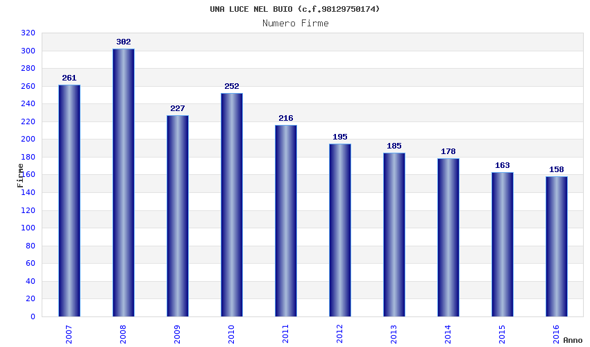 | Anno | Firme | Importi | Media | Naz. | Reg. | Prov. | Comu. |