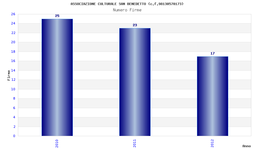 | Anno | Firme | Importi | Media | Naz. | Reg. | Prov. | Comu. |