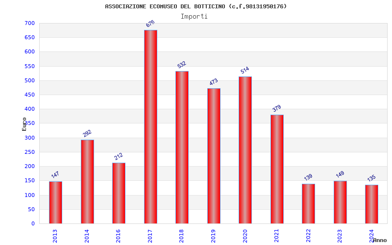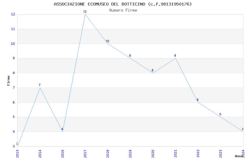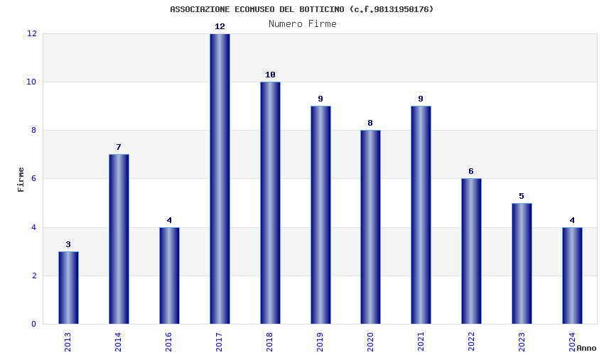 | Anno | Firme | Importi | Media | Naz. | Reg. | Prov. | Comu. |
