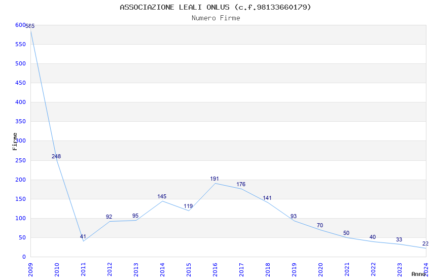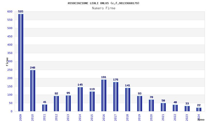 | Anno | Firme | Importi | Media | Naz. | Reg. | Prov. | Comu. |