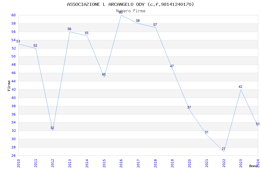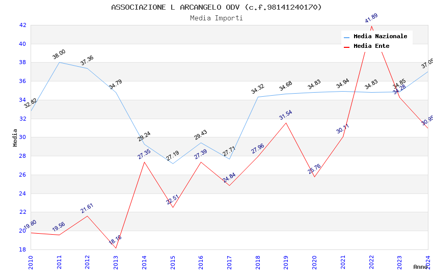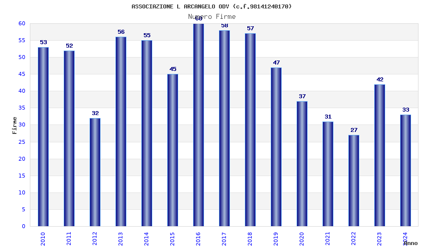 | Anno | Firme | Importi | Media | Naz. | Reg. | Prov. | Comu. |