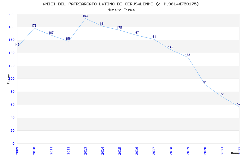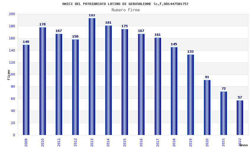 | Anno | Firme | Importi | Media | Naz. | Reg. | Prov. | Comu. |