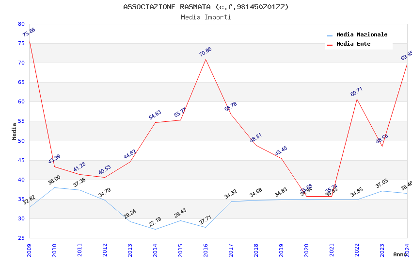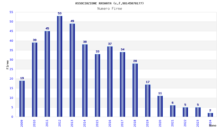 | Anno | Firme | Importi | Media | Naz. | Reg. | Prov. | Comu. |