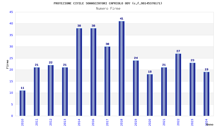 | Anno | Firme | Importi | Media | Naz. | Reg. | Prov. | Comu. |