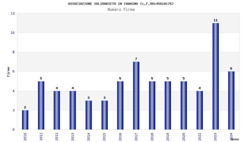 | Anno | Firme | Importi | Media | Naz. | Reg. | Prov. | Comu. |