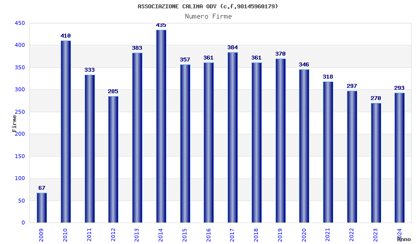 | Anno | Firme | Importi | Media | Naz. | Reg. | Prov. | Comu. |
