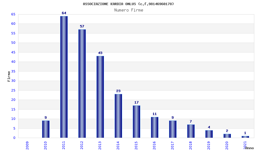 | Anno | Firme | Importi | Media | Naz. | Reg. | Prov. | Comu. |