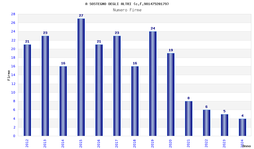 Anno Firme Importi Media Naz. Reg. Prov. Comu.