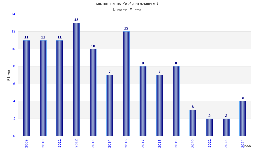 | Anno | Firme | Importi | Media | Naz. | Reg. | Prov. | Comu. |